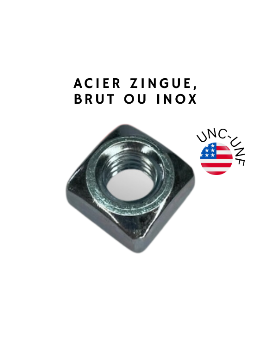 ECROU CARRE AMERICAIN, INOX A2, UNC, UNF, BOITE VISSERIE AMERICAINE AUX COTES POUCESEcrou carré au filetage américain UNC, en inox A2.