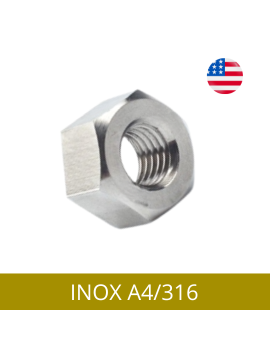 Ecrou UNC-UNF en inox A4, Modèle standard hexagonal (écrou HU). Conforme à la norme américaine B18.2.2 et B18.6.3. Matière inox A4/316. Idéal pour...